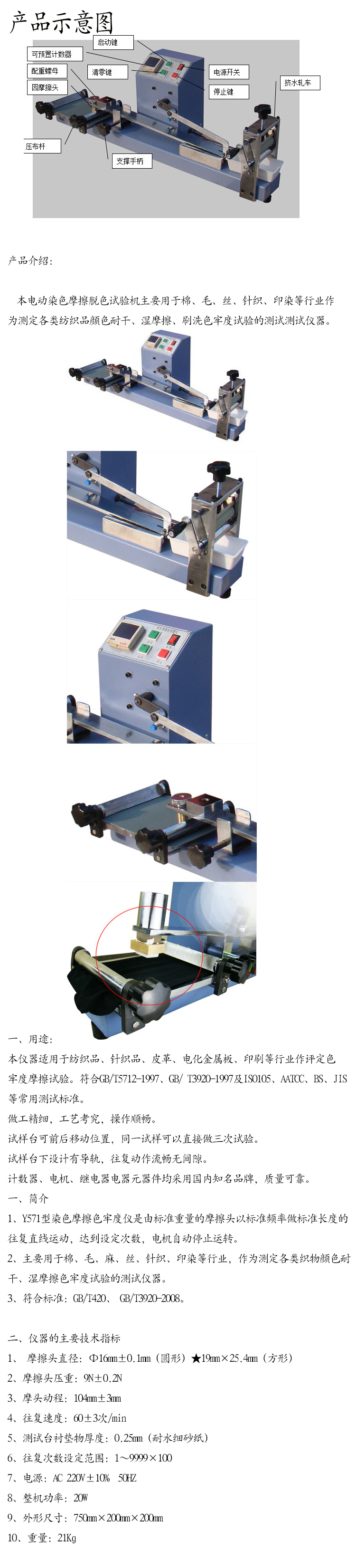 用于各類有色紡織品耐干、濕摩擦色牢度試驗。