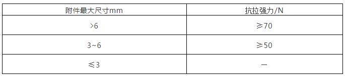 嬰幼兒紡織產品上,不使用≤3mm的附件,可能被嬰幼兒抓起咬住的各類附件抗拉強力應符合以下要求。